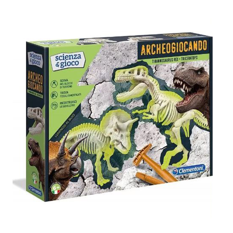 Archaoging T-Rex and Triceratops Science and Game is a science kit in which you can recreate the fierce struggle between the infamous T-Rex and the mighty Triceratops. Dig into the blocks of land to recover the fossils of two massive and fearsome dinosaurs: the T-Rex and the Triceratops.