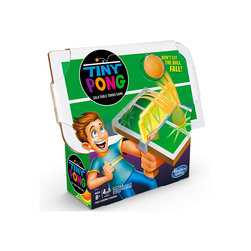 The Tiny Pong Solo Table Tennis game brings exciting bouncing action into the palm of your hand! Launch the ball off the court and bounce it repeatedly on the court to rack up points. Move the court back and forth under the ball. Keep it going, getting a point for every bounce. To increase the challenge, switch from Beginner mode to Expert mode. The game responds with lights and sounds as players try to beat their highest score by getting as many bounces as they can! How long can you keep it going?