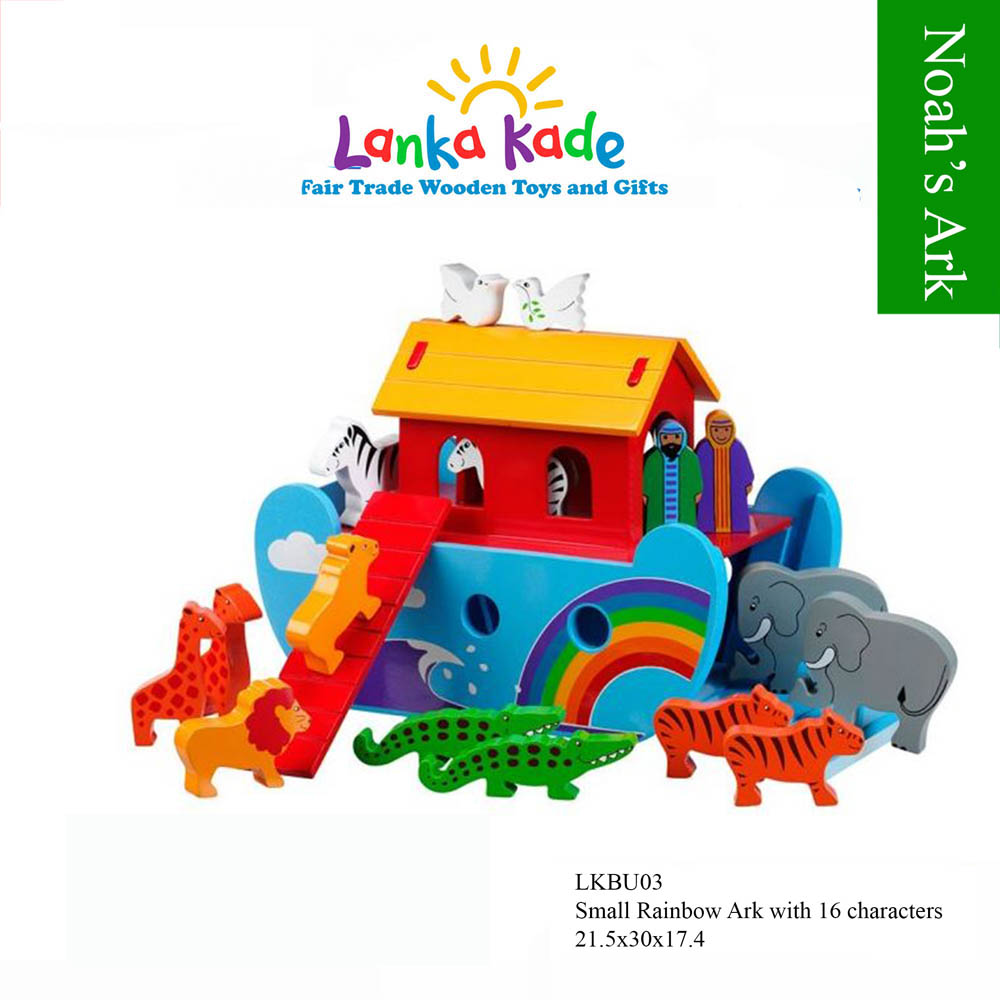 This small rainbow Noah’s ark playset is a fantastic addition to any children’s toy collection. A bright, colourful Noah’s ark, this set comes complete with 14 animals and Mr and Mrs Noah! Dimensions: 215mm (H) x 300mm (W) x 174mm (D) assembled size