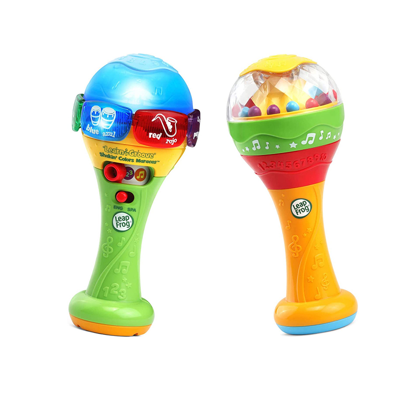 Shake up learning with this musical toy that introduces colors, numbers and music. One maraca features a light-up dome that changes colors and plays fun sound effects while the other maraca includes colorful shaker beads. Switch between English and Spanish mode to let kids explore all of the content in both languages.