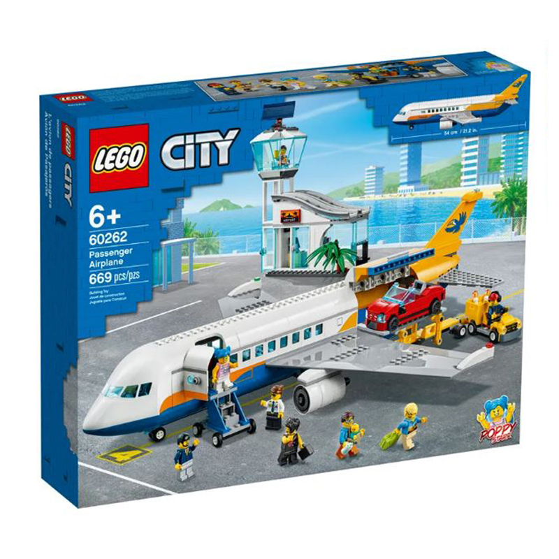 The large toy plane seats the pilot and passenger minifigures, with an opening rear cargo door and roof to access the detailed interior