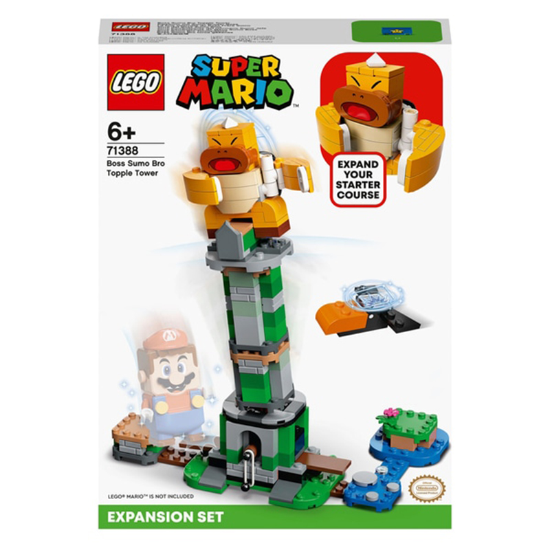 Let kids add another fun challenge to their LEGO® Super Mario™ universe with this Boss Sumo Bro Topple Tower Expansion Set (71388). It features a tower that is rocked by LEGO® Mario™ and/or LEGO® Luigi™ (figures not included) stomping on the levers at its base. It can be built to varying heights, and a Super Star Block is revealed when Boss Sumo Bro is toppled. The set also includes a Crowber figure. (Note: the 71360 or 71387 Starter Course is required for interactive play.)