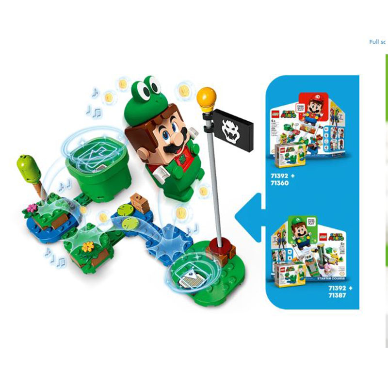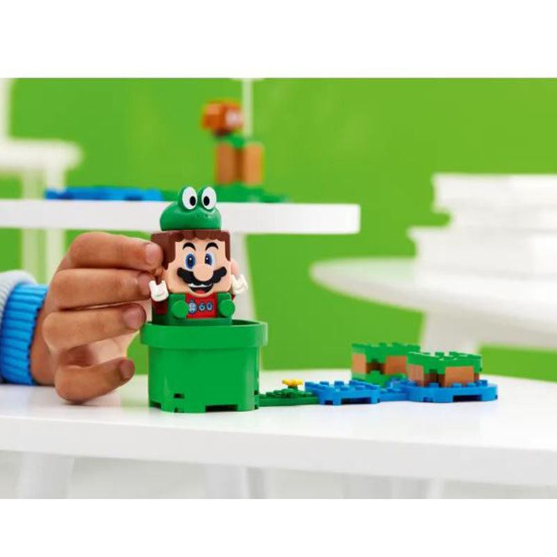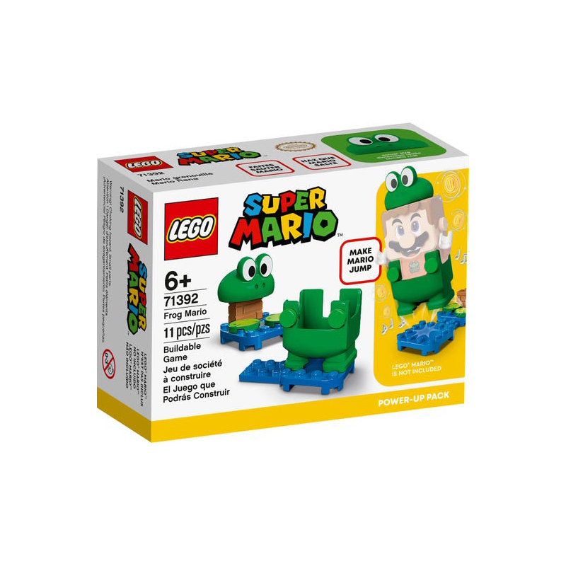 Fans can add leaping, splashing fun to their LEGO® Super Mario™ play experience with this Frog Mario Power-Up Pack (71392). It features an interactive frog suit for LEGO® Mario™ (figure not included), which gives the player a chance to earn extra digital coins for making him jump, and triggers splashing sounds each time he lands. This set is an ideal gift for trend-setting kids who own the LEGO Super Mario Starter Course set 71360, which includes LEGO Mario, or the 71387 set which includes a LEGO® Luigi™ figure.