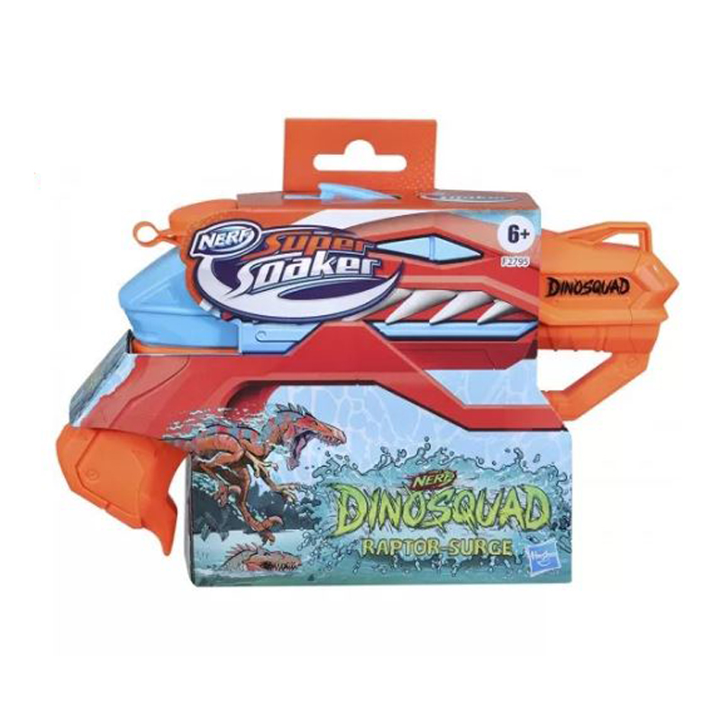 SOAKER RAPTOR-SURGE BY NERF DINOSQUAD: Launch a monstrous jet of water from the dinosaur’s mouth! Take aim and submerge your targets with the power of a dinosaur