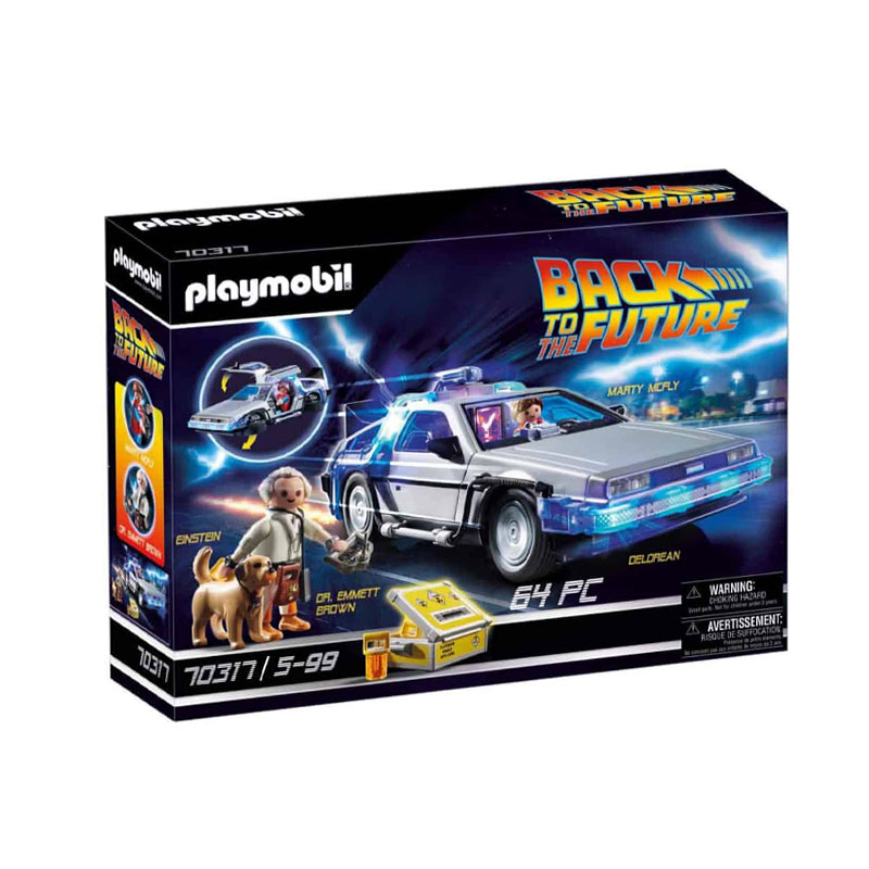 It’s not easy being 17 – school, parents and life in general is just rough. Marty McFly’s only escape is his crazy professor friend Dr. Emmett Brown and his wacky inventions. Doc has just converted a DeLorean into a time machine and before Marty knows it, he travels back in time to the 1950s. Here, he meets his parents when they’re younger and runs the risk of changing his future, as well as disrupting the entire space-time continuum. The big question is how to get back to the future? Climb in and travel through time with Marty in the DeLorean and experience fantastic adventures. Based on the 1980s cult film trilogy, “Back to the Future,” this set includes Marty McFly and Dr. Emmett Brown in their 1985 outfits and Einstein the dog, as well as the legendary DeLorean DMC-12, equipped with a plutonium tank, flux capacitor and dashboard time travel indicator. To switch to flight mode, all four wheels can be folded by 90 Degrees.