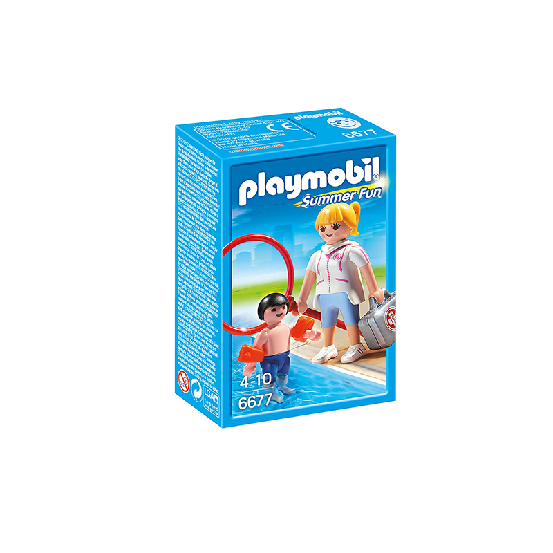 The Playmobil Pool Supervisor is the ideal person to have on hand keeping an eye on the children while they play in the pool. Armed with a medical kit in case of emergencies and a swimming support ring to guide the children along, you can be sure that the little ones are safe while she’s around. The set includes one Playmobil Pool Supervisor, one Playmobil Child in the pool with arm bands and accessories.