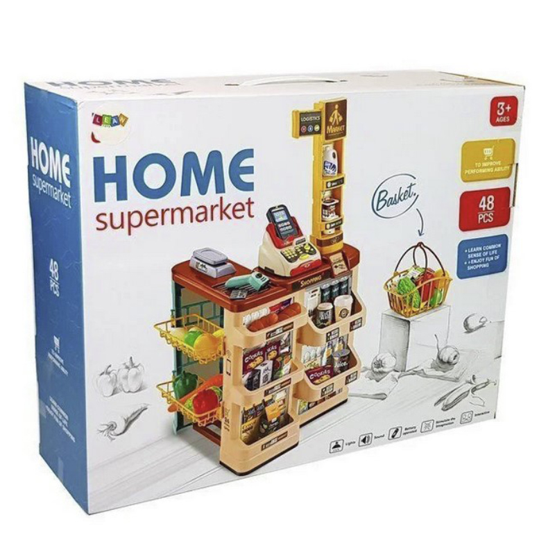 As you step into this miniature pretend play Supermarket set you are invited to embark on an adventure of role play and imagination! Get busy and prepare your shopping list and purchase all you need. This Supermarket set is the perfect place for kids to let their imaginations soar in the world of make believe grocery shopping.