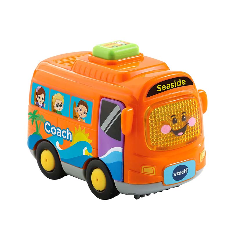 I’m a friendly coach It’s time to start our journey. Travel into the learning zone with the Toot-Toot Drivers Coach by VTech. This cute and chunky coach is perfectly sized for little hands and will entertain your child with the light up face button that triggers fun music, sound effects and songs. Push the coach or press the button for more fun reactions. Includes 3 songs and 6 lively melodies. Encourages motor skills, role-play fun, language development and imaginative play. The coach responds to SmartPoint™ locations with different phrases, sound effects and more on Toot-Toot Drivers® play sets (each sold separately).